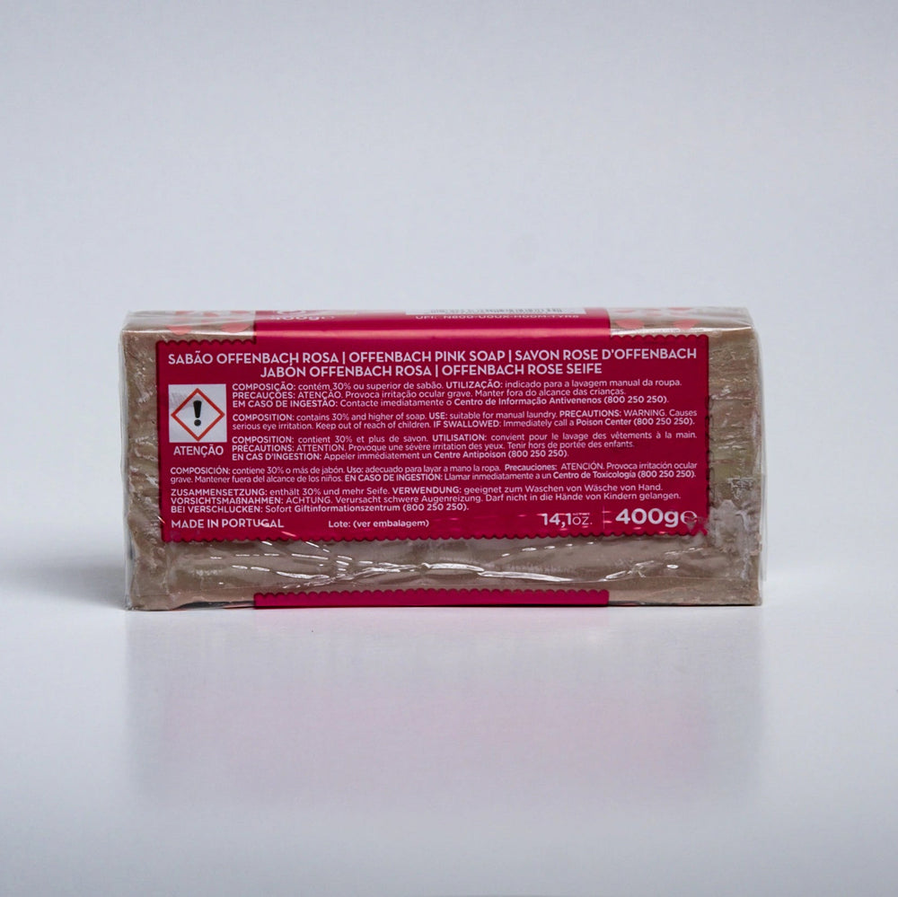 O Sabão Offenbach, também conhecido em Portugal como Sabão Macaco, azul e branco ou rosa, tem origem em Offenbach (Alemanha). Produzido com óleo de palma refinado e de coco, destaca-se pelo seu forte poder desengordurante. A combinação com água, soda e silicato confere-lhe um efeito abrasivo único, tornando-o incomparável na remoção de nódoas.